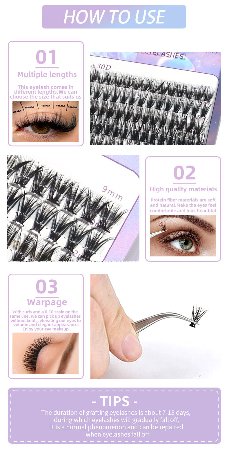 Floraruby Pure Handmade False Eyelashes Simulation Eyelashes Lazy Person Single Cluster 30D Mixed Sunflower Grafting Eyelashes